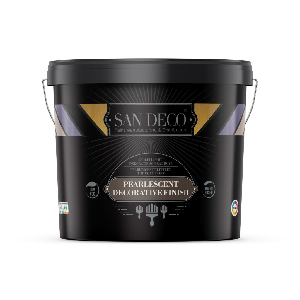 Before starting the application of pearlescent paint, the surface preparation should be completed. The wall on which the paint will be applied must be smooth and clean. Putty or sandpaper can be applied according to the structure of the wall and then primer paint can be applied. Pearlescent paint is the top coat finishing paint. It is recommended that the undercoat or primer be water-based. When the paint box is first opened, the paint should be mixed thoroughly with the help of a spatula. Since pearlescent paint has a dense consistency, it must be mixed and homogeneous. If the person who will paint is not experienced in this field, he should definitely try on a small surface and get his hand used to painting and creating patterns. A floor cover can be used to prevent the paint from splashing around, and masking tape to paint without crossing the border. The application method and the application tool to be used vary according to how you want to apply the pearlescent paint. If the effect will not be given, only pearlescent paint will be applied and left to dry, the paint should be applied from top to bottom with the help of a roller or brush and the brush should not be moved back and forth. Otherwise, the texture of the paint will deteriorate and a homogeneous image cannot be provided. A dry surface with plain paint can be patterned with pearlescent paint with different or the same color. An effect buffer or sponge can be used to do this. In addition, after applying pearlescent paint, it is another type of pearlescent paint application to pass over it with an effect buffer or sponge while the paint is still wet. In this method, two people can work together to apply on large surfaces. While one person is applying the paint, the other person can shape it with a sponge or effect buffer before the paint dries.